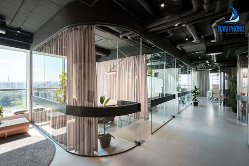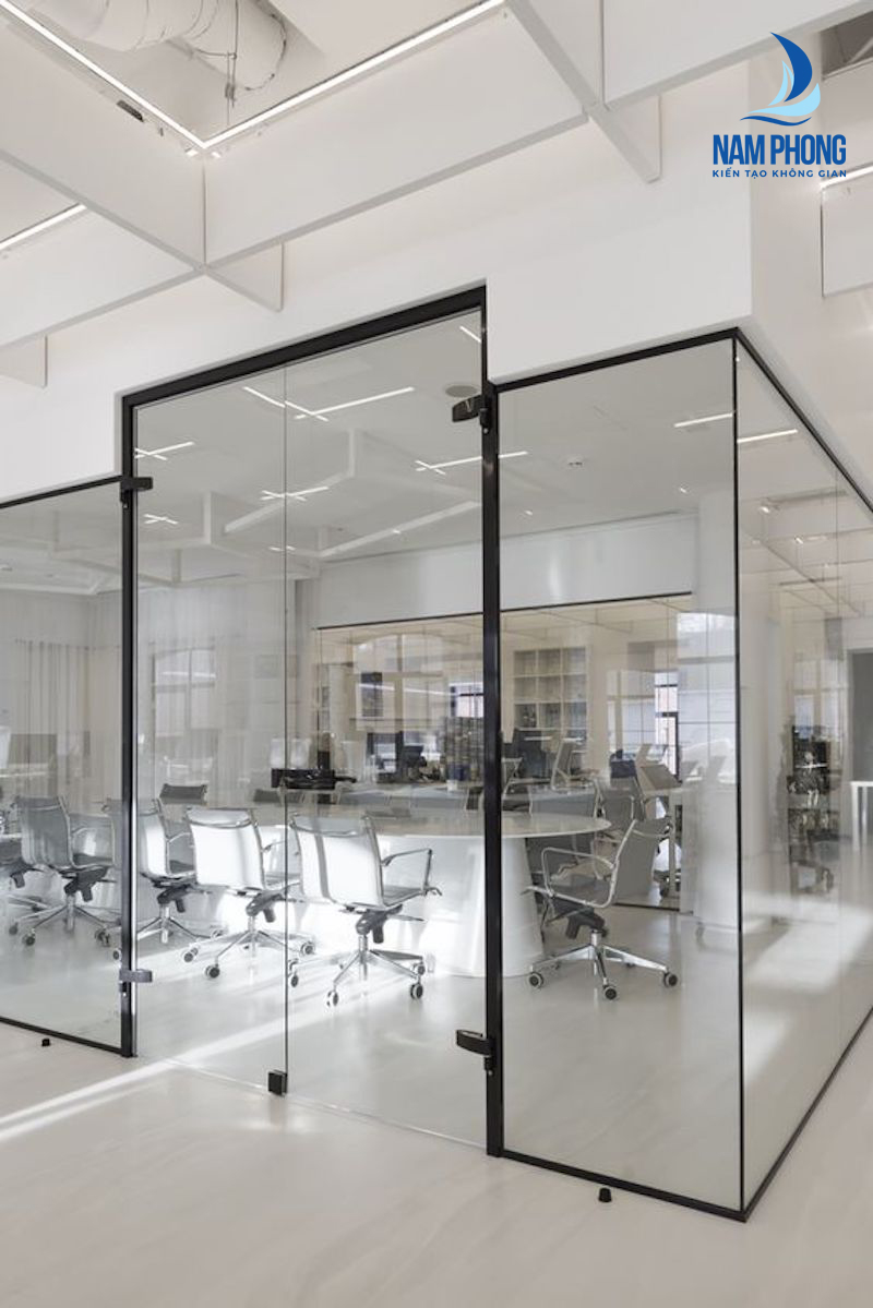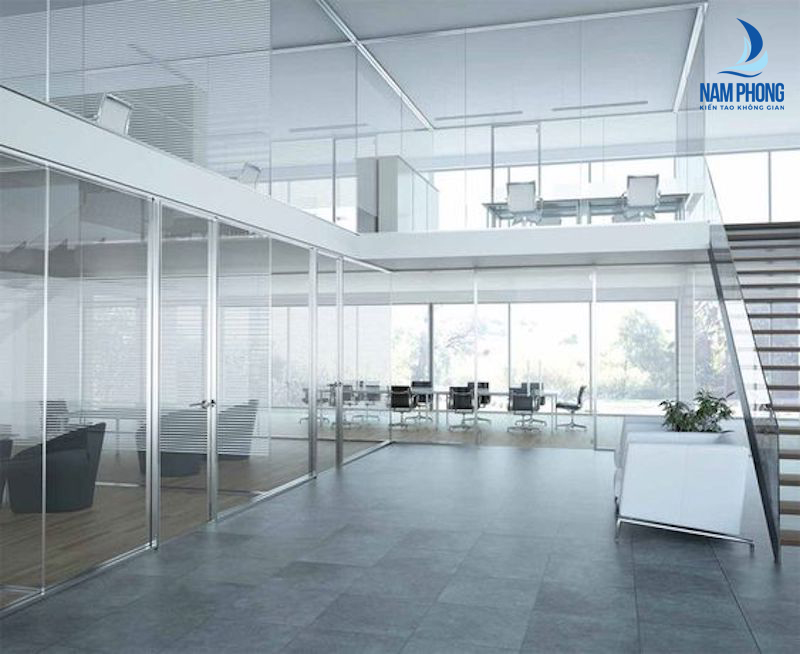 Vách kính văn phòng: Dùng để ngăn cách các phòng làm việc với nhau, vừa tạo được không gian riêng tư, sang trọng, vừa tiết kiệm diện tích và tối ưu chi phí.