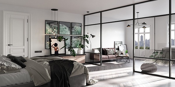 Một thiết kế vách nhôm kính cho phòng ngủ hiện đại