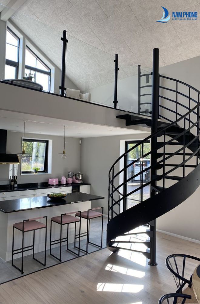 Cầu thang sắt sơn tĩnh điện kiểu dáng xoắn ốc, một lựa chọn phổ biến cho các không gian rộng lớn như biệt thự hoặc các công trình có nhiều tầng. Thiết kế hoa văn tinh tế trên cầu thang sắt mang lại sự độc đáo và hấp dẫn, tạo điểm nhấn đặc biệt cho không gian sống của bạn. Đặc biệt, với mẫu cầu thang sắt xoắn ốc, không gian nhà bạn sẽ trở nên sâu hơn và đẳng cấp lộng lẫy hơn. Mẫu cầu thang sắt vừa có giá cả phải chăng mà còn mang đến sự sang trọng và thẩm mỹ cho căn nhà của bạn.