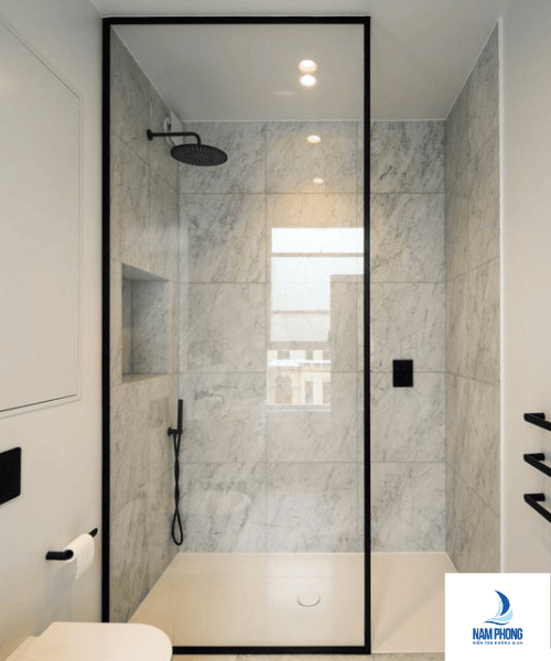 - Vẻ đẹp sang trọng: Kính nhà tắm trong suốt kết hợp khung kim loại cao cấp mang lại cảm giác đẹp mắt và độ hiện đại.