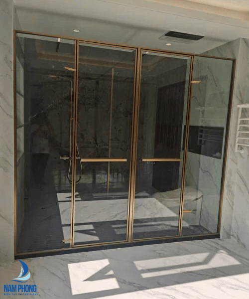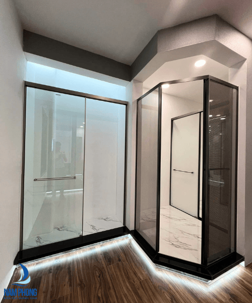 Vách kính cửa lùa là giải pháp lý tưởng cho những phòng tắm có diện tích hạn chế. Cửa lùa giúp tiết kiệm không gian, dễ dàng sử dụng mà vẫn đảm bảo tính thẩm mỹ. Hệ thống ray trượt được thiết kế chắc chắn, đảm bảo độ bền lâu dài.
