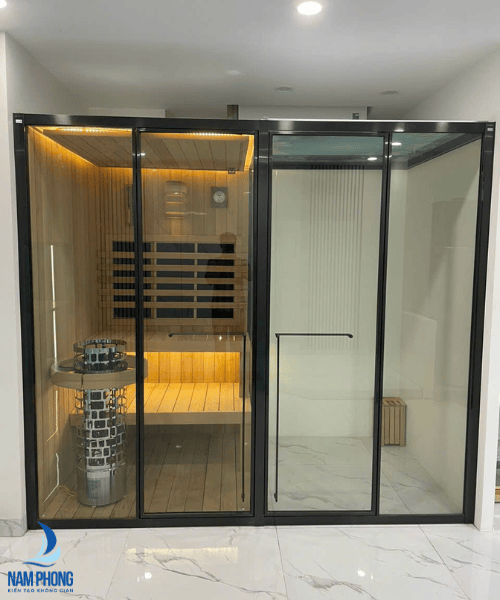 Phòng xông hơi khô và ướt kết hợp vách kính nhà tắm tăng tính thẩm
