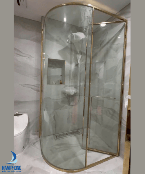 Vách kính tắm uốn cong giúp tạo sự mềm mại và khác biệt so với các thiết kế thông thường. Loại vách này thường được sử dụng trong các resort, khách sạn cao cấp nhằm tăng tính thẩm mỹ và đẳng cấp.