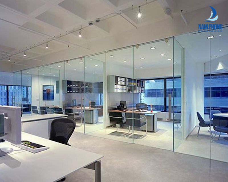 Vách kính văn phòng: Dùng để ngăn cách các phòng làm việc với nhau, vừa tạo được không gian riêng tư, sang trọng, vừa tiết kiệm diện tích và tối ưu chi phí.
