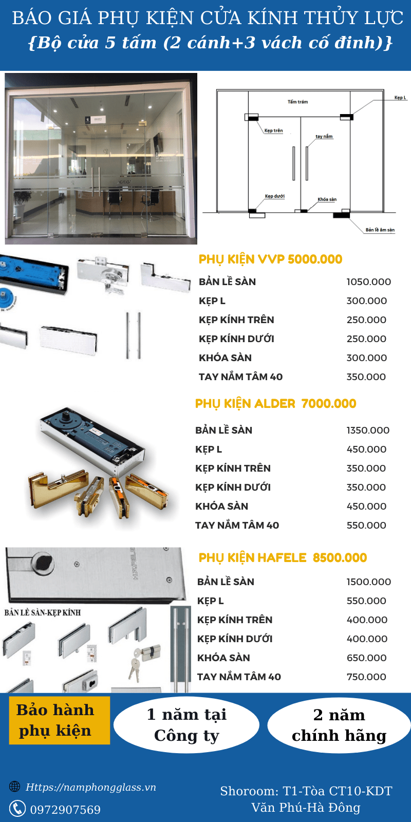 - Lưu ý: báo giá cửa kính thuỷ lực chưa bao gồm VAT