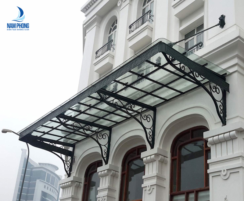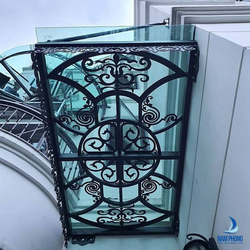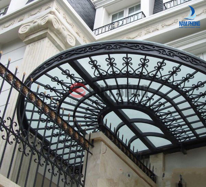 Khác với mái kính cường lực khung sắt thông thường, những mẫu mái kính cường lực đẹp sắt mỹ thuật không chỉ dùng để che nắng che mưa mà còn tạo ra điểm nhấn cho ngôi nhà bởi tính cầu kỳ, sang trọng, gây chú ý bởi những chi tiết uốn lượn hết sức nghệ thuật bởi khung thép mái kính